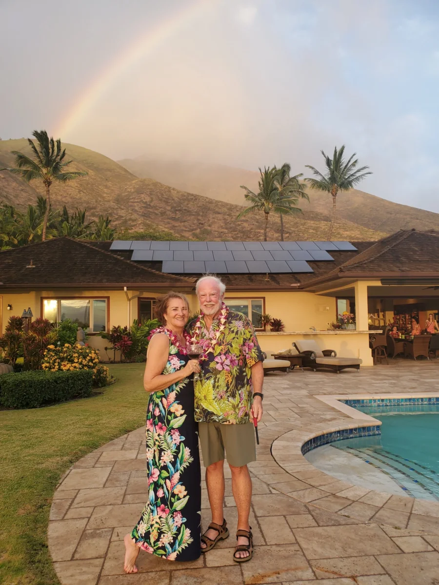 Paul Stritmatter and his wife, Mary Elizabeth picture perfect under the rainbow.