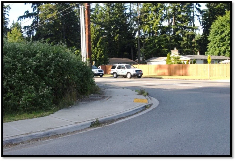 One of many examples is overgrown vegetation at the approach to an intersection. As shown below, blackberry bushes blocked the view of an off-duty police officer who, although properly stopped at the painted stop sign bar, wasn’t able see a motorcycle approaching on her left until it was too late to avoid the crash.