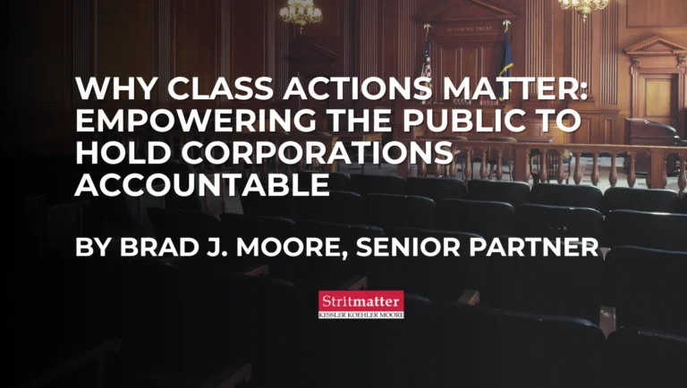 At Stritmatter Law, we believe that no one is too small to stand up for what’s right—and no corporation is too big to be held accountable. Class actions are one of the most powerful tools we have to ensure corporate responsibility, level the playing field, and bring about lasting change.